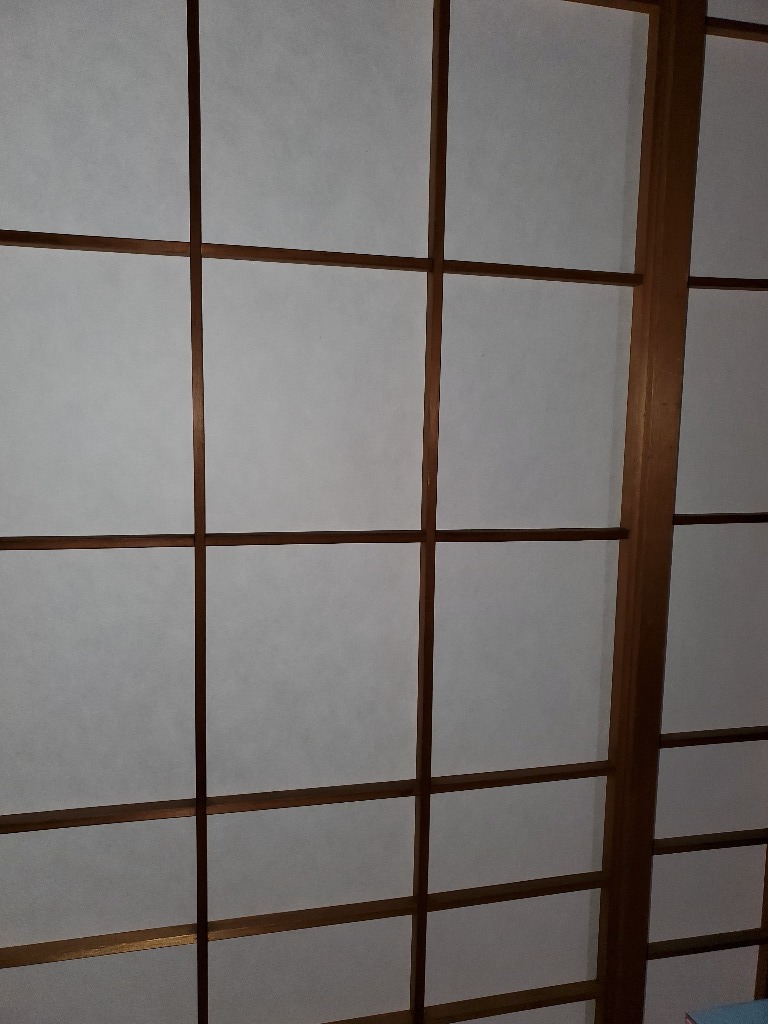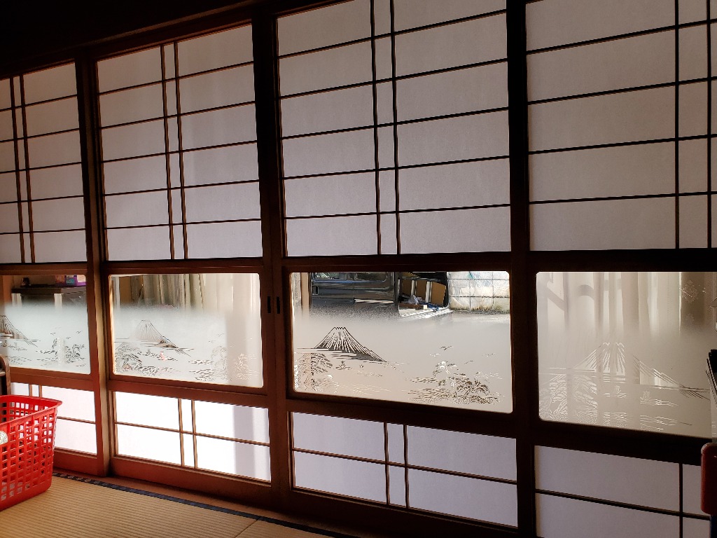金沢屋 大洗・鹿嶋店の大金です。内装リフォーム障子の張り替えをしてきました。リピーターの方で以前は倍厚紙の雲竜を貼ったのですが、孫にすぐに破かれるとのことで格安障子紙でいいとなりました。マメに張り替えたいそうです。障子のガラスにはクレヨンのあとがありました。どうもありがとうございました。