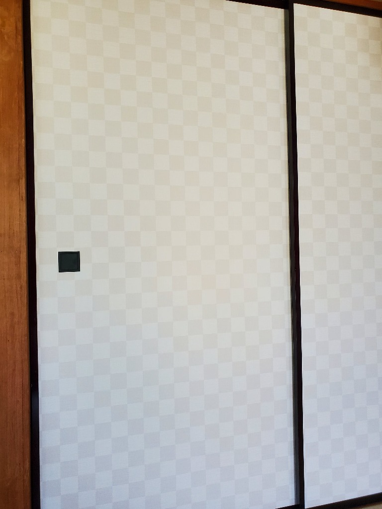 金沢屋 大洗・鹿嶋店の大金です。内装リフォームの襖の張り替えです。ベージュっぽい市松を選ばれました。どうもありがとうございました。